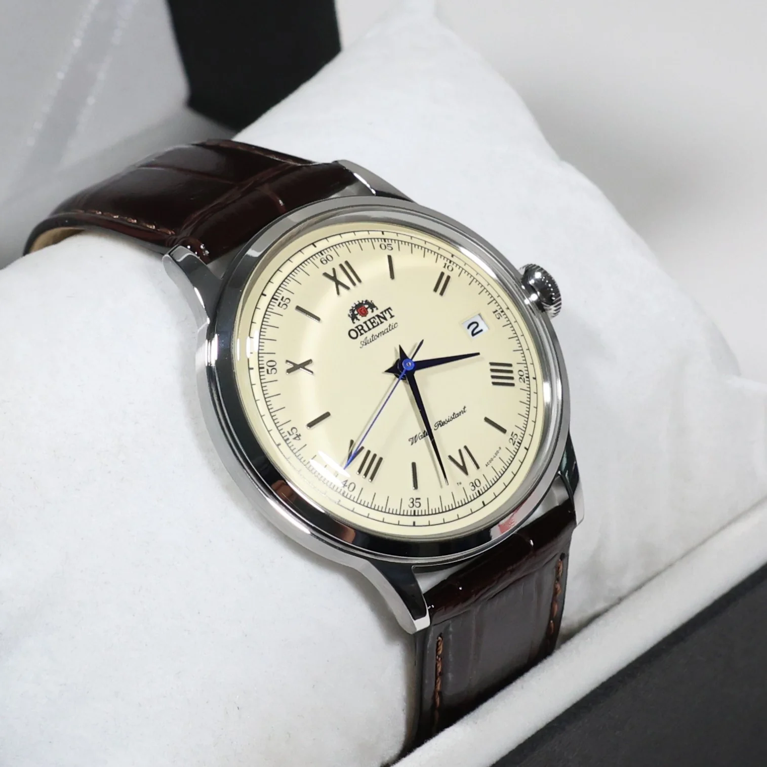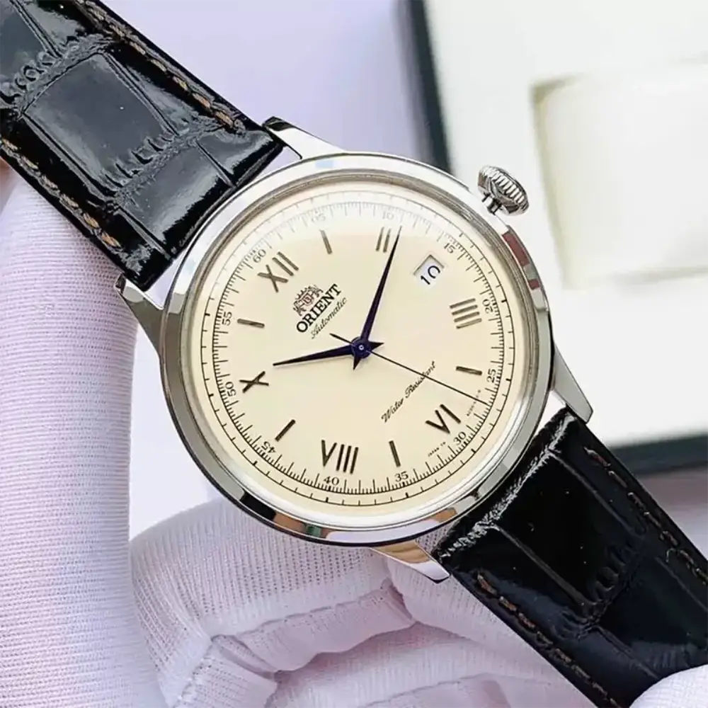 ساعت Orient Bambino TAC00009N0 یک مدل کلاسیک مردانه با طراحی زیبا و صفحهی کرمطلایی با اعداد رومی است که برای استایل رسمی و روزمره مناسب است. این ساعت با موتور اتوماتیک ژاپنی Calibre F6724، قابلیت کوک دستی و ذخیره انرژی حدود ۴۰ ساعت را دارد. قاب استیل ۴۰.۵ mm، بند چرمی و شیشه مینرال قوسدار، ترکیبی از دوام و ظرافت را ارائه می-کند.