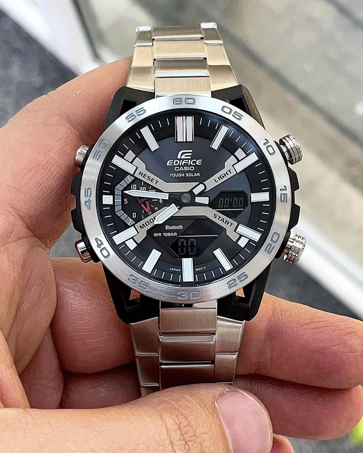 با ساعت مردانه ادیفیس Casio ECB-2000D-1A، زمان را با استایل و دقت تجربه کنید! این ساعت با طراحی مدرن و تکنولوژی بلوتوث، امکاناتی مانند تنظیمات خودکار و شارژ خورشیدی را ارائه میدهد. ضد آب و ساختهشده از مواد با کیفیت، مناسب برای آقایان شیکپوش و ماجراجو. همین حالا خرید کنید و به جمع علاقهمندان خاص بپیوندید!